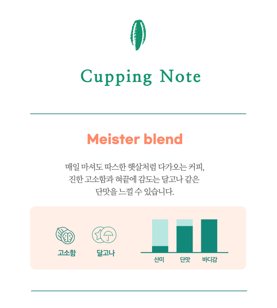 마이스터 블랜드는 인도네시아, 과테말라, 콜롬비아, 브라질